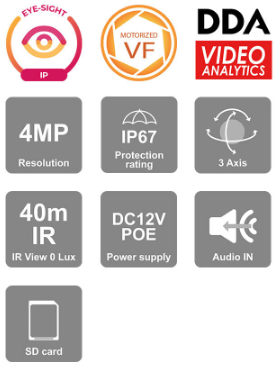 4МП IP камера • Серия Eye-Sight v2 • В реальном времени • 1/2,8″ CMOS • Моторизованная варифокальная линза с автофокусом 2,8-12мм • DDA обнаружение объектов • Распознавание лиц